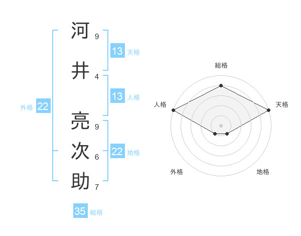 河井 亮次助さんを姓名の画数から五運を鑑定