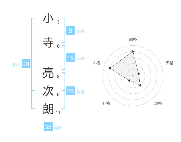 小寺 亮次朗さんの総格は35画の4点!