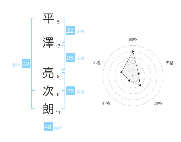 平澤 亮次朗さんの外格は22画の1点!