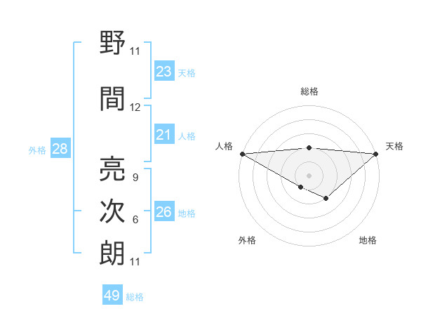 野間 亮次朗さんを姓名の画数から五運を鑑定