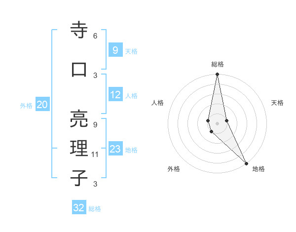寺口 亮理子さんの総格は32画の5点!