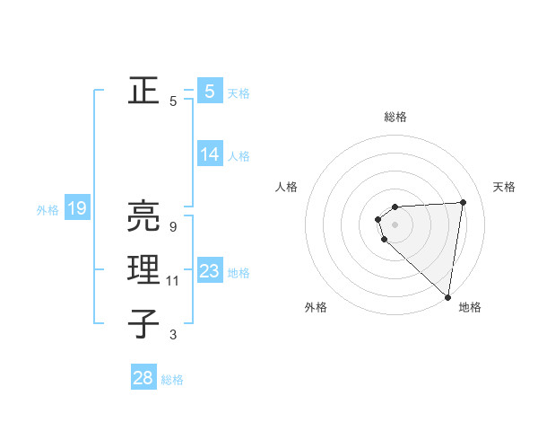 正 亮理子さんの外格は19画の1点!