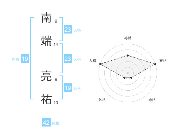南端 亮祐さんの天格は23画の5点!