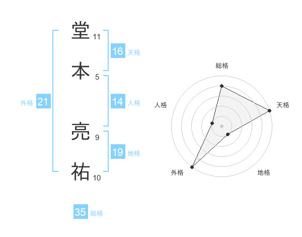 堂本 亮祐さんを姓名の画数から五運を鑑定