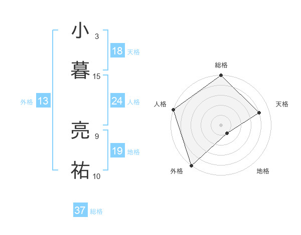 小暮 亮祐さんの総格は37画の5点!