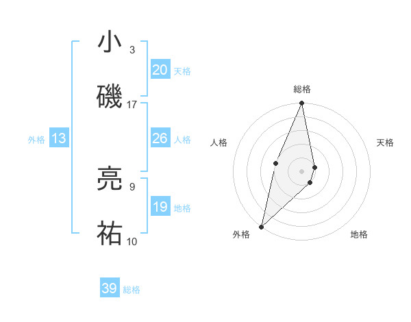 小磯 亮祐さんの外格は13画の5点!