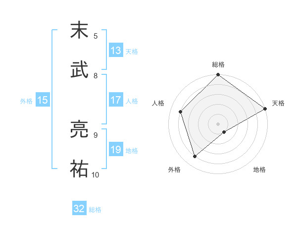 末武 亮祐さんを姓名の画数から五運を鑑定