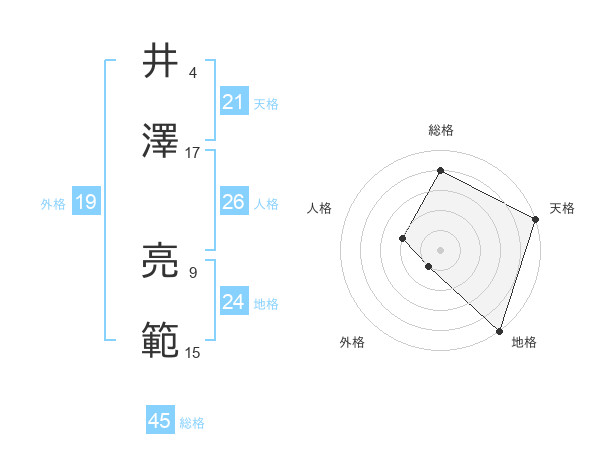 井澤 亮範さんの総格は45画の4点!