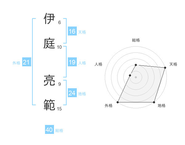 伊庭 亮範さんを姓名の画数から五運を鑑定