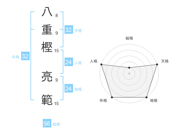 八重樫 亮範さんを姓名の画数から五運を鑑定