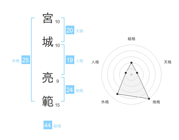 宮城 亮範さんの総格は44画の2点!