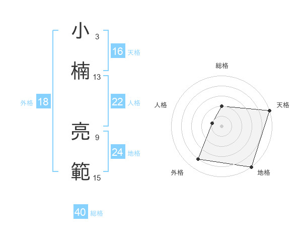 小楠 亮範さんを姓名の画数から五運を鑑定
