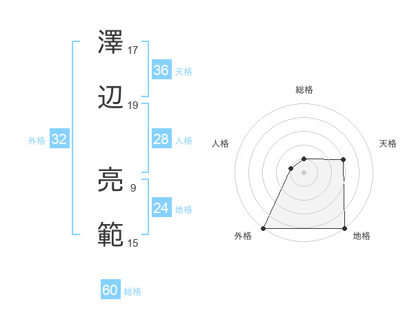 澤辺 亮範さんの総格は60画の1点!