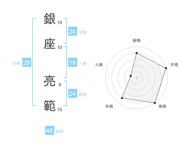銀座 亮範さんの天格は24画の5点!
