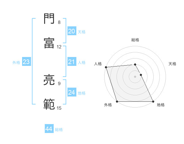 門富 亮範さんの総格は44画の2点!