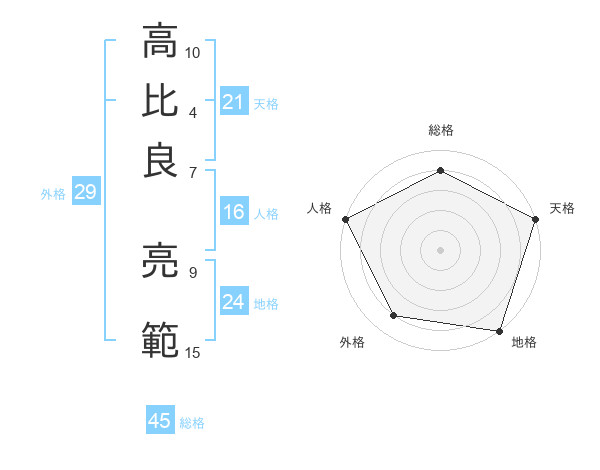 高比良 亮範さんを姓名の画数から五運を鑑定