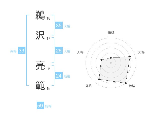鵜沢 亮範さんを姓名の画数から五運を鑑定
