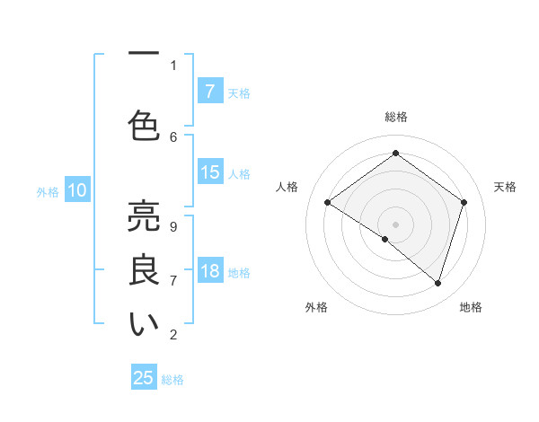 一色 亮良いさんを姓名の画数から五運を鑑定