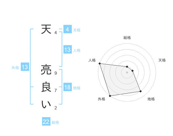 天 亮良いさんの外格は13画の5点!