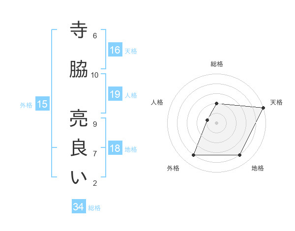 寺脇 亮良いさんの天格は16画の5点!