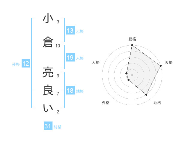 小倉 亮良いさんを姓名の画数から五運を鑑定