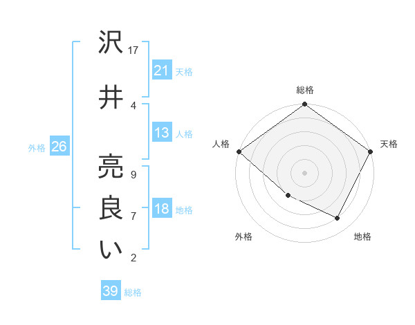 沢井 亮良いさんを姓名の画数から五運を鑑定