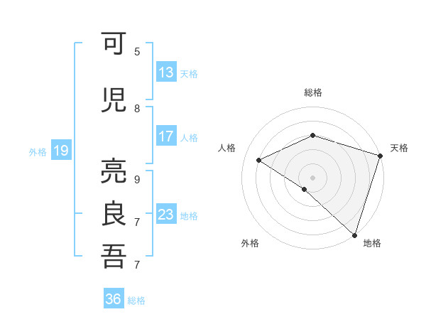 可児 亮良吾さんの地格は23画の5点!