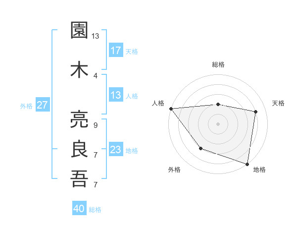 園木 亮良吾さんの地格は23画の5点!