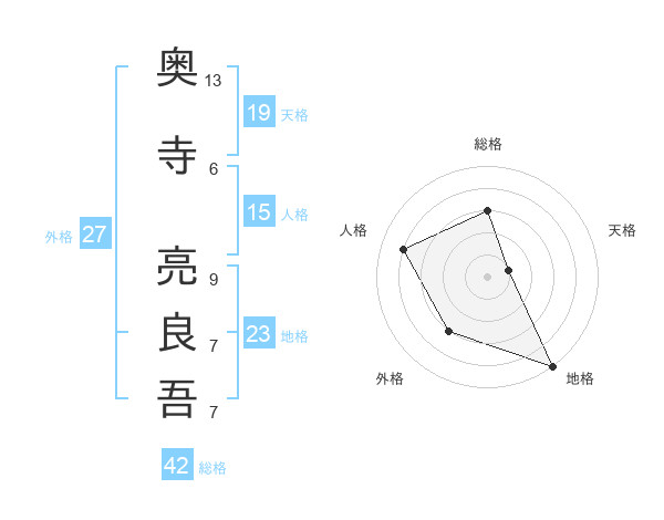 奥寺 亮良吾さんの地格は23画の5点!