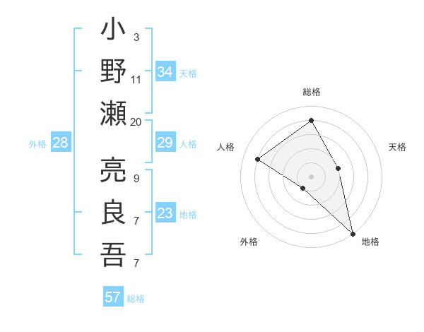 小野瀬 亮良吾さんを姓名の画数から五運を鑑定