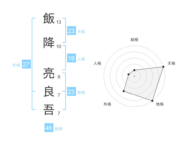 飯降 亮良吾さんを姓名の画数から五運を鑑定
