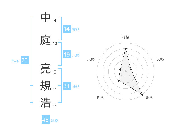 中庭 亮規浩さんを姓名の画数から五運を鑑定