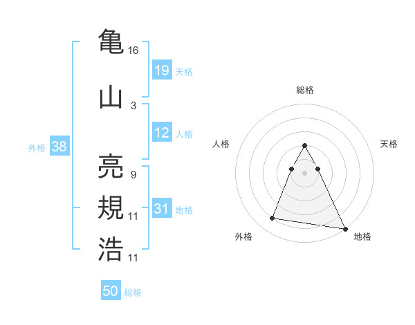 亀山 亮規浩さんの総格は50画の2点!