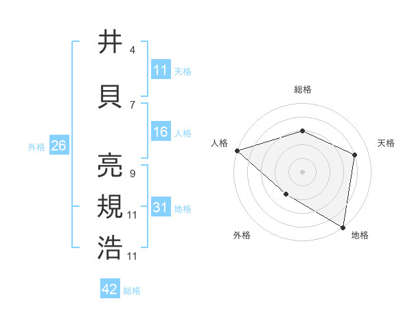 井貝 亮規浩さんの地格は31画の5点!