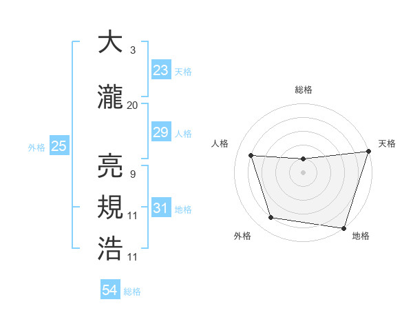 大瀧 亮規浩さんの外格は25画の4点!