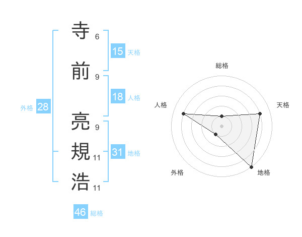 寺前 亮規浩さんの総格は46画の1点!
