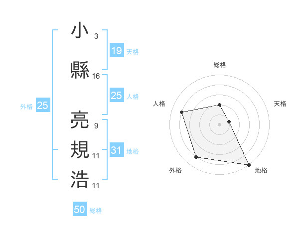 小縣 亮規浩さんを姓名の画数から五運を鑑定