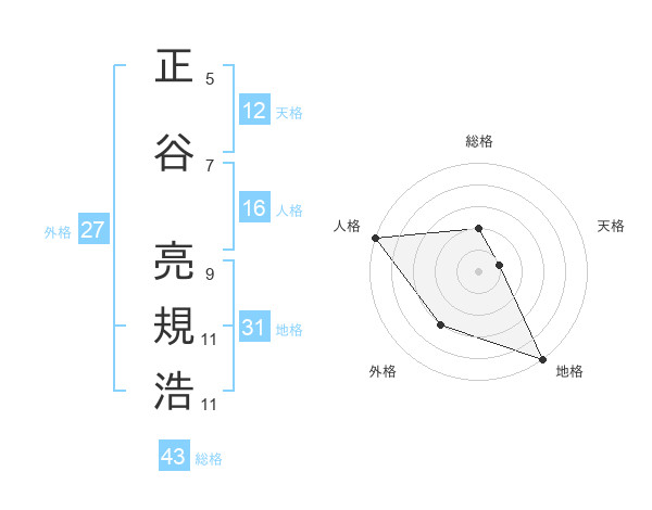 正谷 亮規浩さんの地格は31画の5点!