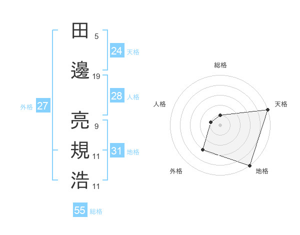 田邊 亮規浩さんの総格は55画の1点!
