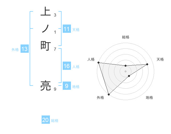 上ノ町 亮さんを姓名の画数から五運を鑑定