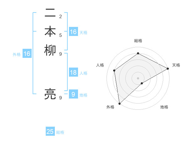 二本柳 亮さんを姓名の画数から五運を鑑定