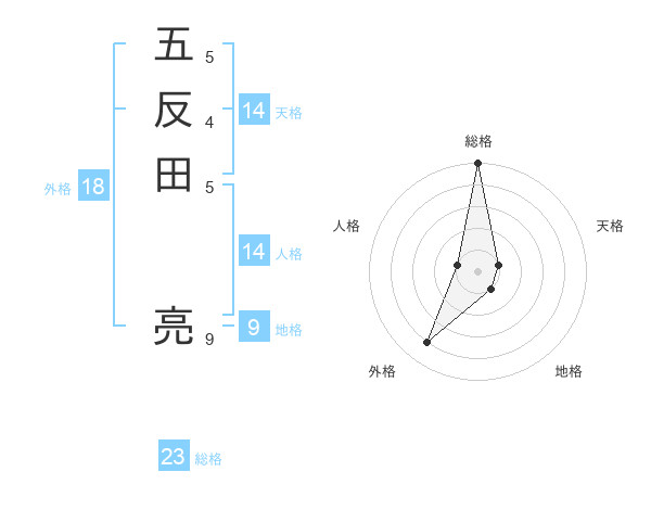 五反田 亮さんの総格は23画の5点!