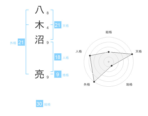 八木沼 亮さんを姓名の画数から五運を鑑定