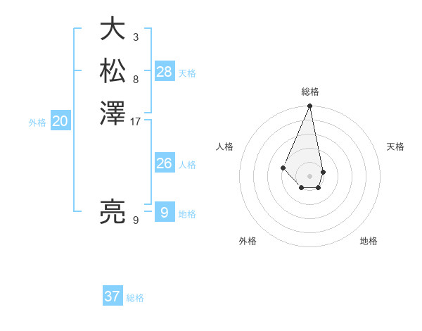 大松澤 亮さんの総格は37画の5点!