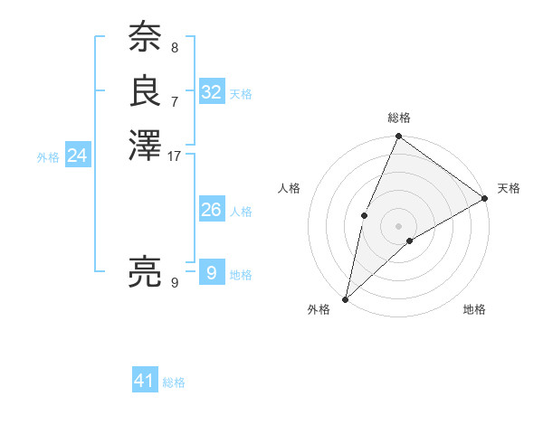 奈良澤 亮さんを姓名の画数から五運を鑑定
