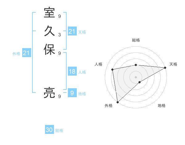 室久保 亮さんの天格は21画の5点!