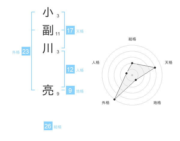 小副川 亮さんの総格は26画の2点!