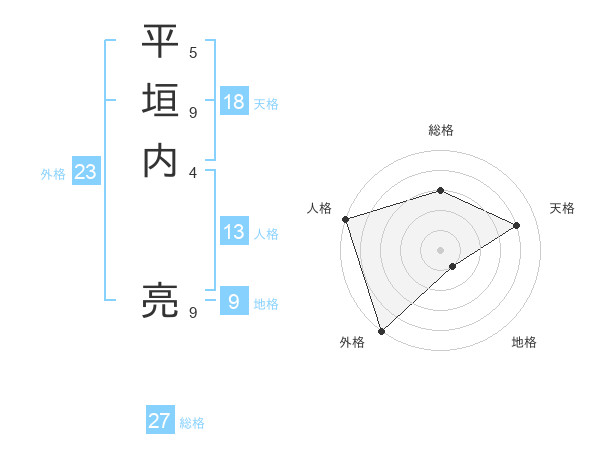 平垣内 亮さんを姓名の画数から五運を鑑定