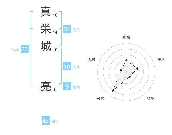 真栄城 亮さんの総格は43画の2点!