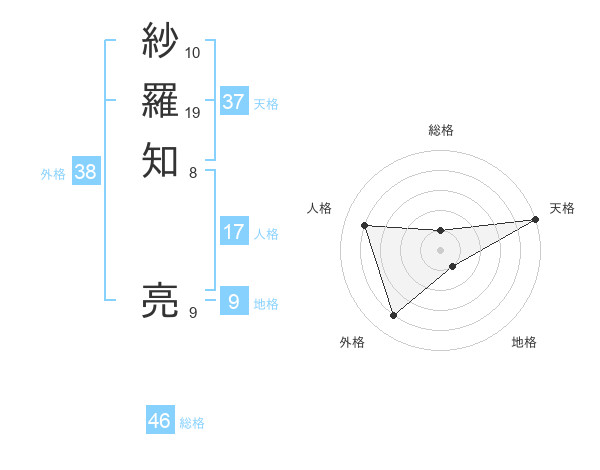 紗羅知 亮さんの天格は37画の5点!